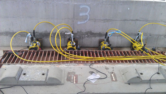 ▲同步顶升系统用于沪宁高速无锡段桥梁同步顶升维修